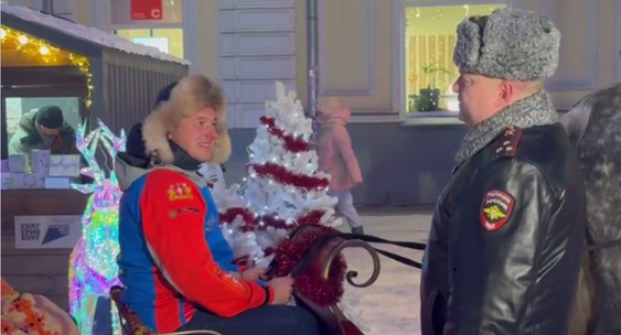 В Екатеринбурге начальник ГИБДД лично остановил сани, запряженные лошадью, двигавшиеся по пешеходной зоне улицы Вайнера.e1.ru