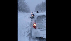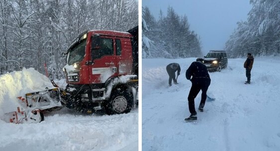 В Архангельской области в минувшие выходные сильный снегопад парализовал движение по дороге на Онегу со стороны Плесецка.News29.ru