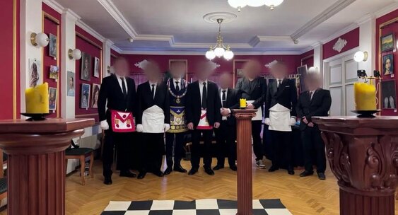 У шести человек были масонские запоны (фартуки с символикой масонских организаций), у Великого Мастера на шее висела цепь с орденом.JustMedia