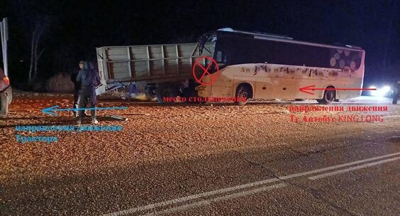58-летний водитель автобуса King Long не выдержал дистанцию и столкнулся с двигавшимся впереди трактором с прицепом.РБК