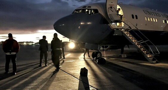 Воздушное судно поднялось с базы Эндрюс в Кемп-Спрингс ранним утром 27 января и взяло курс на Средний Запад.Телеканал 360°