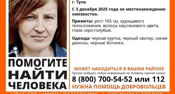 В Туле пропала 35-летняя женщина, местонахождение которой неизвестно с 3 декабря 2025 года.Тульские новости