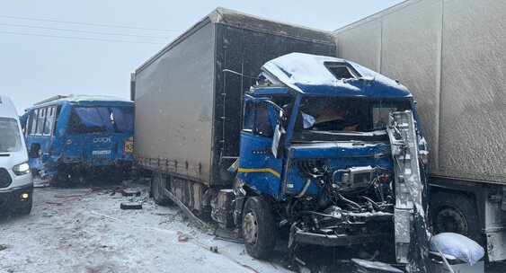 После первого столкновения в аварию также попали автомобиль Toyota и два грузовика Камаз, уточнили в ведомстве.RT на русском