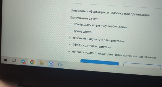 В ведомстве уточнили, что проверить можно как свои долги по кредитам, алиментам, налогам и штрафам, так и других горожан и организаций. Для этого нужно вбить ФИО, дату рождения и регион. А для проверки компании - название, адрес и регион. Сервис выдаст информацию по дате и причине возбуждения исполнительного производства.