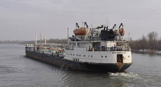В Ростовской области теплоход Волгонефть-242 навалился правым бортом на подъемный мост пешеходной переправы.Don24