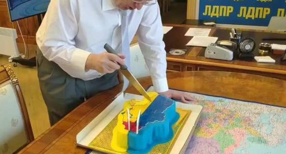Глава фракции тогда отделил от торта с картой Украины нынешние Крым, ЛНР, ДНР, Херсонскую и Запорожскую области.Главный региональный