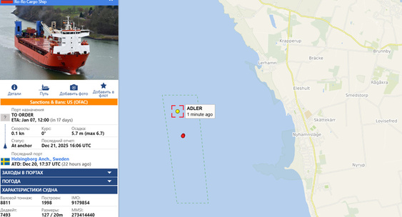 Шведские власти в ночь на 21 декабря задержали российское грузовое судно Adler для досмотра, сообщает SVT.RTVI