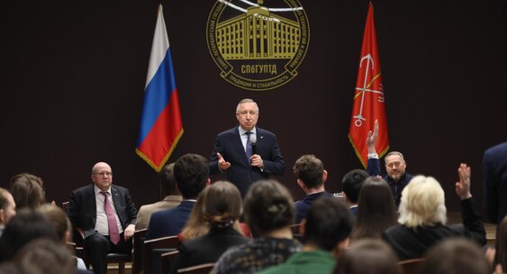Участие в беседе, состоявшейся в Санкт‑Петербургском государственном университете промышленных технологий и дизайна, также принял председатель законодательного собрания Александр Бельский.РИА Новости