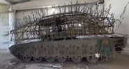 На видео показана боевая машина, над верхней полусферой которой установлен решетчатый мангал.Общественная служба новостей