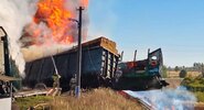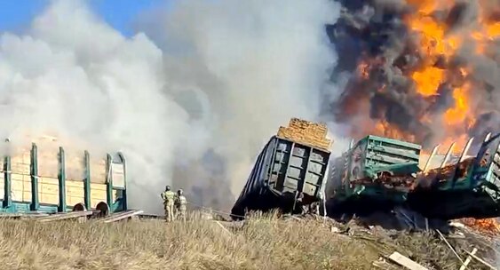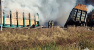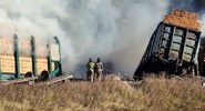 От столкновения с грузовиком часть товарного состава сошла с рельсов.Life.ru