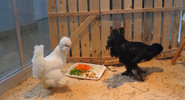 Фото: скриншот видео Разместились белая и черная курочки по соседству с морскими свинками.Smolnarod.ru