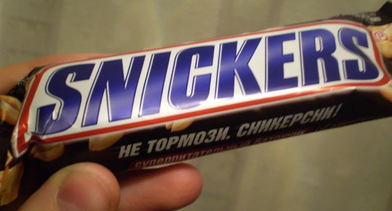 В Лондоне стали появляться шоколадные батончики Snickers с надписями на русском языке.Царьград
