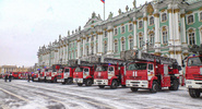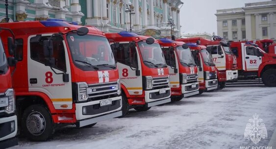 Среди полученной техники - автоцистерны, автолестницы, специализированные пожарные автомобили, квадроциклы и другая техника.КП - Санкт-Петербург