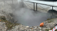 Специалисты Теплосети ранним утром завершили ремонт трубы на Бассейной улице, 23, из-за прорыва которой кипятком залило двор, и в провал угодило несколько авто.