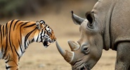 Тигр убил самку носорога на водопое в заповеднике Дудхва в Индии