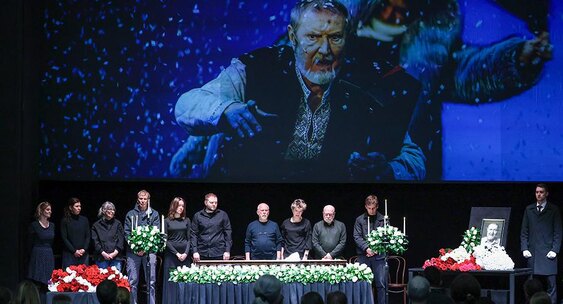 В фойе и в зале были размещены медиаэкраны, на которых транслировались фотографии из творческой жизни Ершова.ТАСС