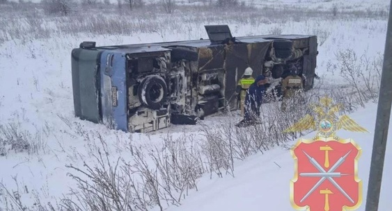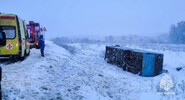 3 января в Богородицком районе Тульской области опрокинулся автобус с 31 пассажиром.RT на русском