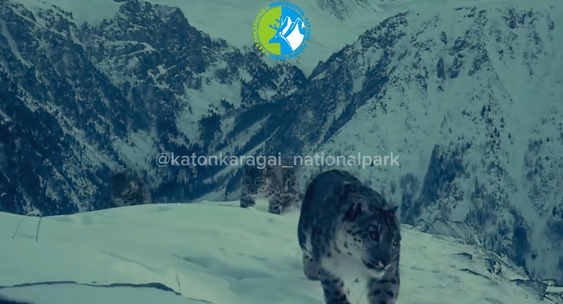 Снежный барс с котятами попал в фотоловушки в национальном парке в Казахстане