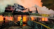 Горящее двухэтажное деревянное кафе тушат пожарные на Камчатке