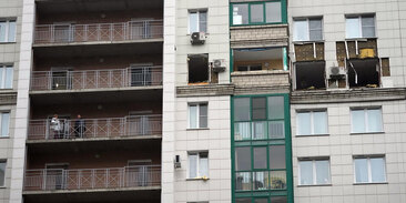 РЕН ТВ публикует кадры последствий атаки украинского беспилотника на многоэтажный дом в подмосковном Красногорске, в результате которой пострадал ребенок и четверо взрослых.