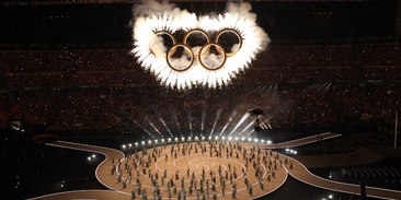 Болельщик из России Евгений Бурденюк пронес российский флаг на стадион "Сан-Сиро" в Милане на церемонию открытия Олимпийских игр.