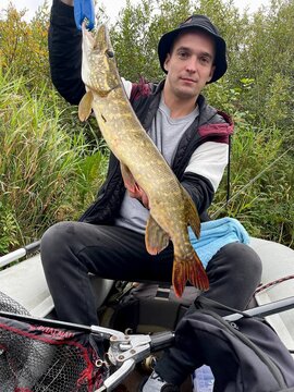 Героя сегодняшнего выхода зовут Андрей. Очень довольный парень с фото, первый раз в жизни пошёл на рыбалку и поймал рыбу. Начал рыбалку с теории. Рассказал и показал, как сделать заброс и пользоваться катушкой. Перешли к практике и через 10 минут соблазнили первую зубастую на 1,2кг. Андрей, принаровился и смог поймать ещё одну щуку, которая на весах показала 1505гр. Для первого раза очень солидно. Моя первая щука была всего 10см в длину и поймал её на червя😁