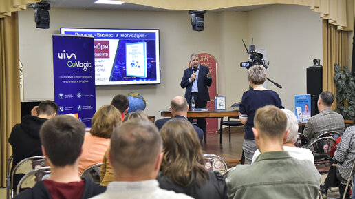 С замечательной Екатериной Шеленковой заместителем руководителя отдела развития продуктов Битрикс24 на презентации релиза Космос в ноябре 2025.