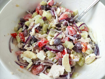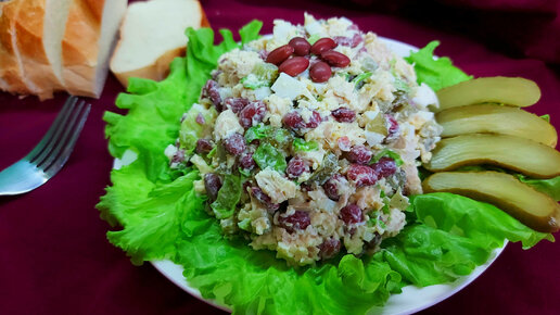 Простой рецепт очень вкусного салата с фасолью и курицей