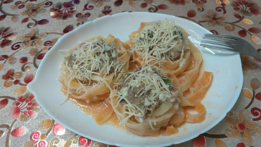 Пищевая ценность на 100 г Калории 137 ккал Белки 5 г Жиры 6 г Углеводы 15 г Ингредиенты: Фарш мясной – 300 г , свиной Макароны – 300 г , гнезда Лук-порей – 200 г Морковь – 120 г Петрушка – 20 г Томатная паста – 2 ст л Сливки – 200 мл , 20% Мука – 1 ст.л. Соль – 1 ч.л. , или по вкусу Перец черный – 0.5 ч.л. , или по вкусу Вода – 600 мл , горячая (50-60 градусов) Рецепт: Подготовить ингредиенты: макароны, заранее размороженный фарш, сливки, томатную пасту, овощи. Нарезать кубиком лук. Половину лука добавить к фаршу, посолить и поперчить...