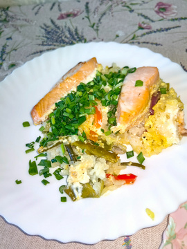 Курица с овощами и рисом в духовке - это блюдо, которое сочетает в себе нежное мясо курицы, ароматный рис и разнообразные овощи, приправленные травами и специями. Это удивительно вкусное и сбалансированное блюдо, которое можно приготовить для семейного обеда или ужина. Понадобится: Рис 1/3 стакана Куриные бёдра 1 кг Кабачок 1/2 шт Морковь 1 шт перец сладкий 1 шт грибы 3-4 шт баклажан мини 2 шт Помидор 1 шт Чеснок 2 зубка Масло растительное 2-3 ст.л. Соль, перец, куркума, паприка по 1/2 ч.л. Чтобы...