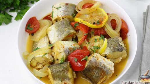 Охлаждённая тушеная рыба с луком и гранатовым соусом