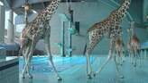 Французский короткометражный фильм о 50-метровом бассейне, в который стадо жирафов совершает серию акробатических прыжков с вышки