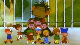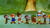 Воспитательница детского сада вывела на прогулку в парк группу из семи малышей, каждый из них держался рукой за верёвку. А вредная Ворона попыталась тянуть детей за верёвку назад…