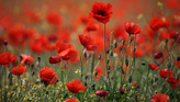 Красные маки украшают пейзаж своими яркими лепестками. Они качаются на ветру, создавая живую картину природы. Насладитесь их нежной красотой