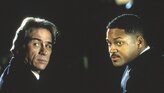 Опасный пришелец прибывает на Землю. Для его поимки засекреченный отдел по борьбе с инопланетной угрозой «Люди в чёрном» приглашает новобранца — эксцентричного копа Джея. Отныне он и его полная противоположность, суровый агент Кей, — напарники