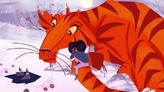 Девочка и тигр едут на велосипеде по весеннему городу за свежими булочками Они — лучшие друзья, вместе растут, вместе играют, радуются жизни вплоть до особого дня, когда для одного из них город становится слишком тесен