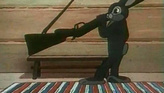Нечего делать зайцам, пошли они куда глаза глядят. Но по дороге им встретился спящий охотник, в которого заяц взял ружьё. Ну, а с ружьём ему ничего не страшно