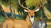 Волка придавило упавшее дерево. Благородный Олень помог ему выбраться. Но Волк не сдержал данного слова и вместо благодарности напал на Оленя. Мудрый Медведь рассудил спорщиков