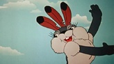 О зайце, который однажды поймал три орлиных пера, одел их на голову, и это сразу придало ему храбрости. Он даже медведя не испугался, наоборот, медведь бежал и всё время оглядывался назад, не догоняет ли его кто