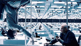 На верхней планете царит богатство и благоденствие. На ней создана корпорация, выкачивающая недры второй планеты и взамен предлагающая электроэнергию по неподъёмной для бедных жителей нижней планеты цене