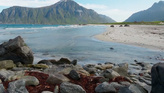 Пляж Скагсанден поражает сочетанием песчаного берега, скалистых выходов и величественных гор. Насладитесь этим уникальным уголком природы