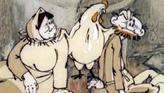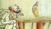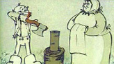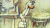 Утро. Деревенская изба. Поёт петух. Дед встаёт с печки. Баба уже на ногах, приносит в избу полные вёдра на коромыслах. Дед хочет есть, ждёт, когда курочка, сидящая в корзинке, снесёт яичко. А курочка не несётся…