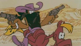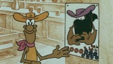 Бандит в чёрной маске расстрелял поезд, забрал из почтового вагона мешок золотых монет и ускакал на своей лошади. Бандит укрылся на ранчо, откуда вышвырнул фермера и его корову. Фермер с коровой отправился в ближайший городок…