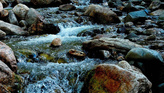 Захватывающий вид на ручей, который плавно струится среди природы, создавая гармоничную картину. Насладитесь игрой света на воде и звуками текущего потока