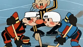 Хоккейный матч между зазнавшимися «мастерами» и дружной командой новичков завершается, конечно, победой скромных и самоотверженных маленьких хоккеистов