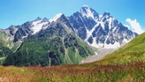Вы посетите склон горы Чегет, где сможете наслаждаться потрясающими горными пейзажами и чистым воздухом, окружённым величественными вершинами