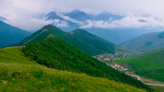 Приглашаем вас в мир величественных гор и плывущих меж ними облаков! Вас ждут завораживающие виды на живописные вершины, окутанные лёгкой дымкой облаков, которые словно танцуют в воздухе, меняя очертания и создавая волшебные узоры