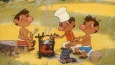 Летом по лесной тропинке в поход отправляются три спортсмена с огромными рюкзаками. Найдя удобное место, они ставят палатку и разжигают костёр. Один из них идёт собирать грибы и встречается с местной девочкой
