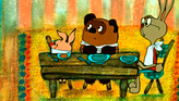 Как-то утром Винни-Пух прогуливался с Пятачком и сочинял новую песенку. И тут Пуху пришла идея пойти к кому-нибудь в гости. Они пошли наугад, напевая песню «Кто ходит в гости по утрам», сочинённую Пухом, и пришли к норе Кролика