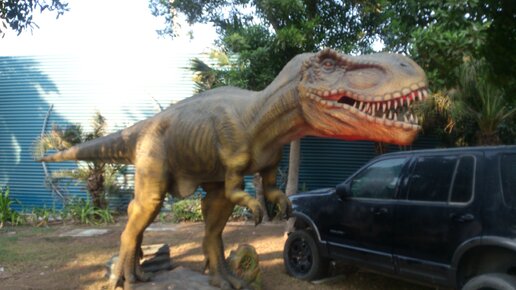Огромные динозавры в парке Дубая.